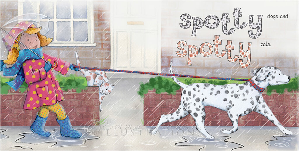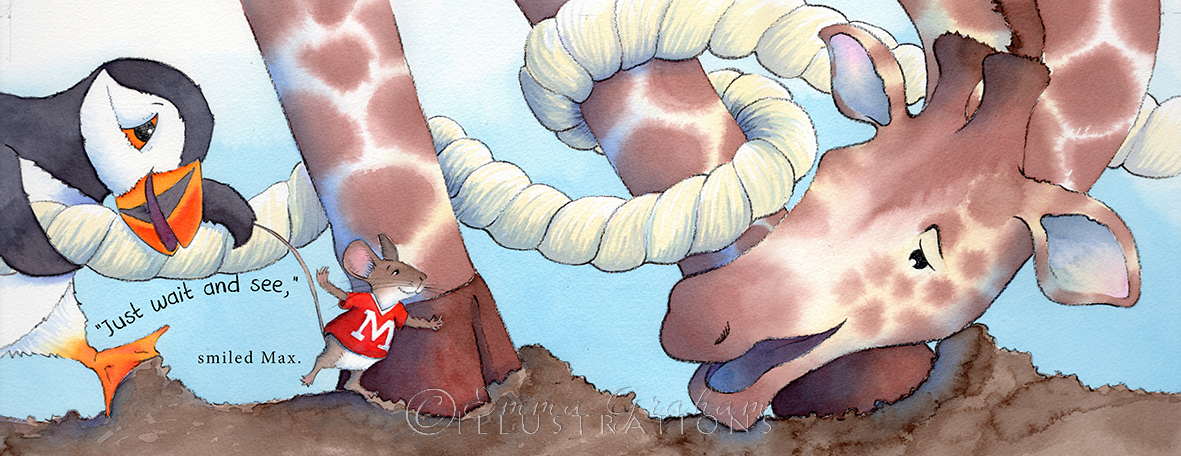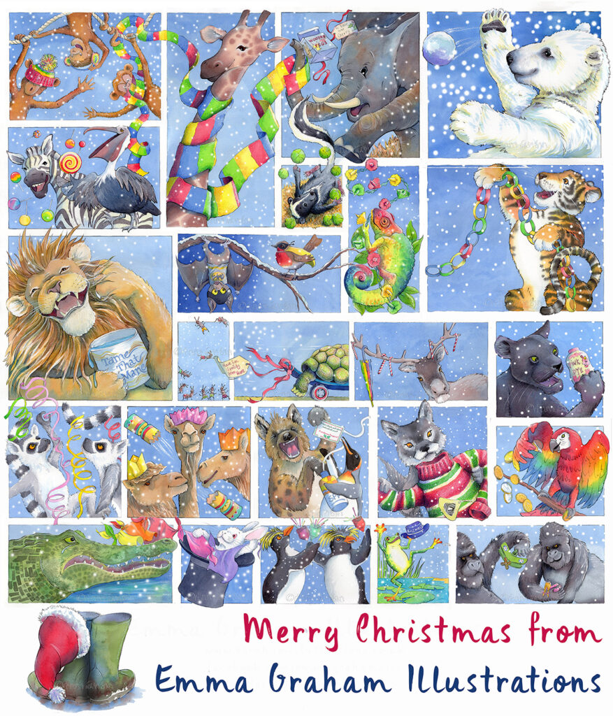 Here is a selection of recent pieces of finished work. Dotty and her spotty dog Alice and the caterpillar from Alice in Wonderland Alice falls down the rabbit hole from Alice in Wonderland The lion is caught in the hunters net from The Lion and the Mouse – Aesop’s fable Tiny Max Mouse explains his tug of war plan to the giraffe and the puffin Rewilding Britain blue heart of wildlife Christmas at the zoo – festive fun and puns